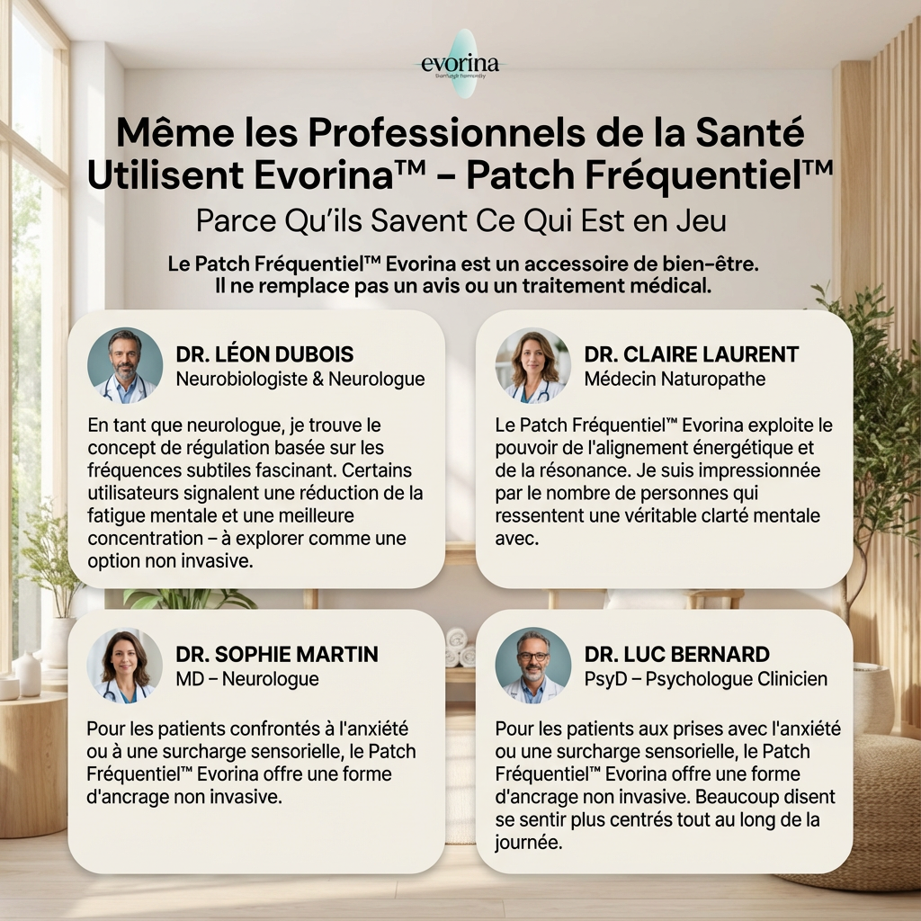 Le Patch Fréquentiel™ Evorina est conçu pour favoriser une sensation de calme mental et de clarté intérieure, en accompagnant naturellement le corps face aux stimulations du quotidien.